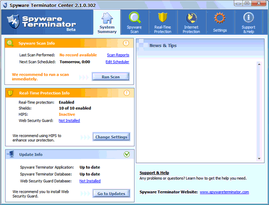 免費(fèi)且易用的間諜軟件清除軟件,同時也能夠?qū)崟r保護(hù)你的系統(tǒng)不受木馬、瀏覽器劫持及惡意軟件等的入侵。與大多數(shù)優(yōu)秀的間諜軟件查殺工具一樣,Spyware Terminator也擁有一套惡意代碼特征庫,這個庫可以在線更新,使你能防范各種新型惡意程序的攻擊。