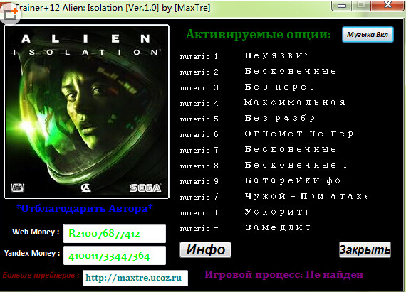 異形隔離是一款在太空和遙遠(yuǎn)行星上進(jìn)行的射擊游戲,而異形隔離修改器異形隔離的游戲輔助工具,這款游戲輔助修改工具添加了武器、物品等5項(xiàng)功能,使游戲玩家能夠輕松的度過(guò)關(guān)卡。