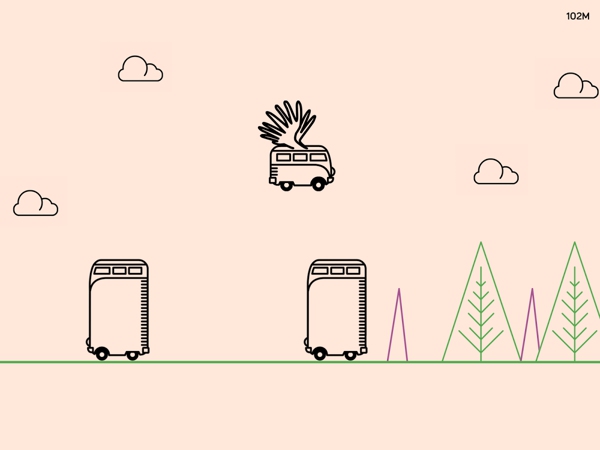 《奇妙旅途 The Trip》是一款風(fēng)格簡約的無盡跑酷游戲,以往的跑酷游戲都非常注重畫面的酷炫,科幻風(fēng)、魔幻風(fēng)打造的畫面完全是華麗的世界,但《奇妙旅途》卻不走尋常路,如同小學(xué)生作品般的簡約畫風(fēng)看起來雖然不酷,卻很有愛。游戲中玩家要操控一輛露營車,在一條簡單樸素的手繪道路上疾馳,點擊屏幕可以進行跳躍,收集到從天空中落下的晶體可以讓露營車擁有新的能力,如:彈簧跳躍、飛行、“瘋鳥”式空中跳躍等。