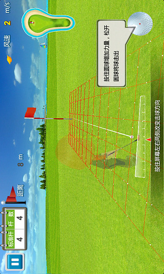 確定方向,選擇好的桿 ,桿桿都精彩?。?br />本游戲真實(shí)模擬現(xiàn)實(shí)高爾夫的手感,用3D引擎技術(shù)實(shí)現(xiàn)游戲畫面的豐富與真實(shí),容易上手,綠色清新的畫面效果,將給你帶來身臨其境的感覺!