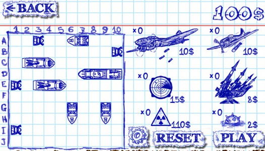 海戰(zhàn)棋是一款十分風(fēng)靡的棋盤類游戲。你可以選擇和電腦玩,也可以選擇用藍(lán)牙和朋友一起玩。 在游戲中,你將會擁有一個強(qiáng)大的軍火庫,其中包括戰(zhàn)艦、驅(qū)逐艦、轟炸機(jī)、深水炸彈、愛國者導(dǎo)彈、雷達(dá)等。將你的戰(zhàn)艦放置在不同大小的戰(zhàn)格上,并嘗試?yán)棉Z炸機(jī)大規(guī)模投放重磅炸彈將對手的戰(zhàn)艦擊沉吧!你可以發(fā)揮你的軍事才能,將不同的戰(zhàn)艦、轟炸機(jī)和愛國者導(dǎo)彈等放在特定的位置,進(jìn)而一步一步將對手逼至絕境!【游戲玩法】