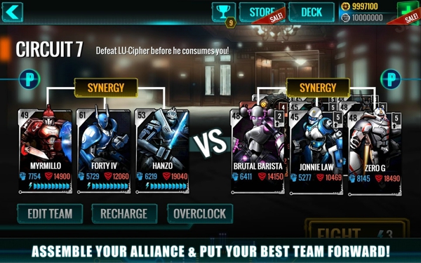 提高你的戰(zhàn)斗機(jī)器,升級(jí)和促進(jìn)。開關(guān)和洗你的團(tuán)隊(duì)或選擇協(xié)同集,會(huì)給你獨(dú)一無(wú)二的戰(zhàn)斗優(yōu)勢(shì),最適合你的游戲風(fēng)格!
