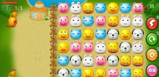動(dòng)物大作戰(zhàn)游戲玩法是經(jīng)典的三消方式,玩家只要把任意相同的動(dòng)物頭像湊齊橫排或豎排為三個(gè)或三個(gè)以上可發(fā)起消除。并且游戲中還有很多特殊的道具和技能,玩家可以在游戲的過(guò)程中進(jìn)行探索。