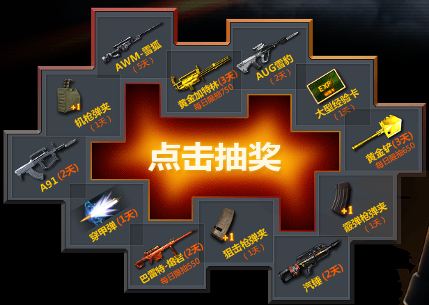 活動期間,使用QQ瀏覽器打開本頁面,并且已經(jīng)創(chuàng)建《槍林彈雨》角色的玩家可獲得1次抽獎機會,100%中獎,單個QQ限抽1次。