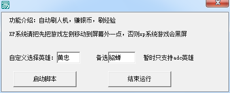 英雄三國(guó)霸主輔助是一款輔助工具。該輔助可以幫助玩家自動(dòng)掛機(jī),還有賺銀幣和自動(dòng)刷經(jīng)驗(yàn)。對(duì)玩英雄三國(guó)的玩家來(lái)說(shuō),這是一款非常好的輔助軟件,可以解放玩家的雙手,輕松升級(jí)。啟動(dòng)后腳本會(huì)自動(dòng)選擇人機(jī),然后選擇人物,然后進(jìn)入游戲后會(huì)等90秒倒計(jì)時(shí)結(jié)束后才開(kāi)始買(mǎi)裝備出發(fā)戰(zhàn)斗,然后游戲勝利后會(huì)重新選擇人機(jī),一直循環(huán)。
