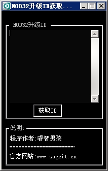 睿智男孩NOD32升級(jí)ID獲取器 V2.0 簡(jiǎn)體中文修正版 一鍵獲取正版Nod32升級(jí)帳號(hào)與升級(jí)密碼。