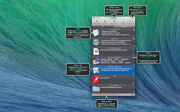 3、支持任何Mac OS X支持的文字,圖片,文件和任何應用程序特定的復制粘貼數據格式。
