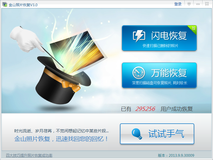 第一步:獲取金山數(shù)據(jù)恢復(fù)如果您已經(jīng)安裝金山毒霸,忽略這一步。若沒有安裝毒霸,可以下載金山照片恢復(fù)完成后點(diǎn)擊安裝即可。