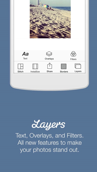 使用重疊選項,輕松地為您的照片加入濾鏡效果和文字。