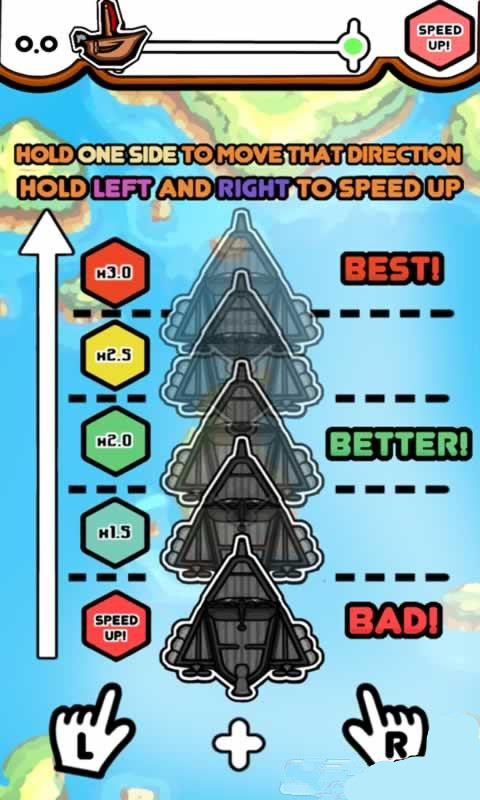 帆船驚魂游戲開始比較容易,越到后面越難。