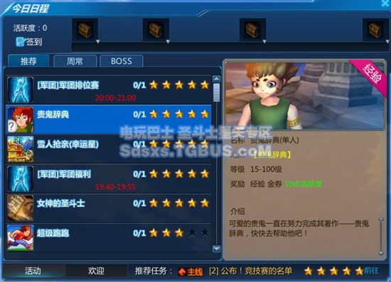 點(diǎn)擊小地圖左下角的日歷圖標(biāo)打開活動(dòng)界面?;顒?dòng)類型包括:主城內(nèi)活動(dòng),跑環(huán)任務(wù),日常野外BOSS擊殺,副本戰(zhàn)斗,戰(zhàn)場(chǎng)等等。這些活動(dòng)都會(huì)提供豐厚的獎(jiǎng)勵(lì)。