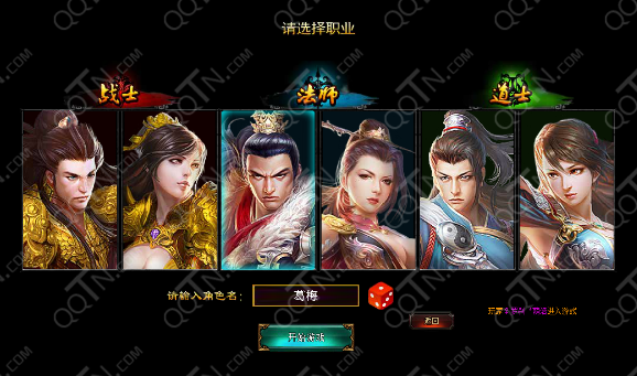 成功登陸游戲后進(jìn)入到創(chuàng)建選人界面。1、 可以從戰(zhàn)士、法師、道士中選擇其一作為你的角色職業(yè);