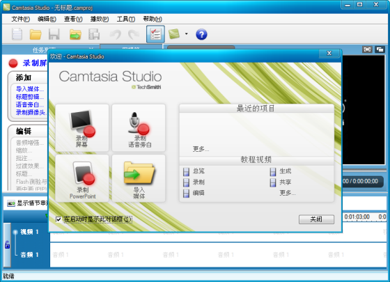 1、首先打開我們的CamtasiaStudio,你將看到如下界面,點(diǎn)擊錄制屏幕。