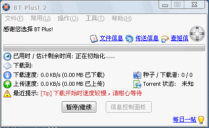 BitTorrent Plus!II V1.33 Final 多國(guó)語(yǔ)言綠色免費(fèi)版 BitTorrent Plus! 是一個(gè)功能完善的 BitTorrent 客戶端.它基于成熟的 BitTorrent 核心并繼承了 BitTornado 一系列 激動(dòng)人心的改進(jìn)與增強(qiáng). Plus! v2 1.3 Beta1更新情況: