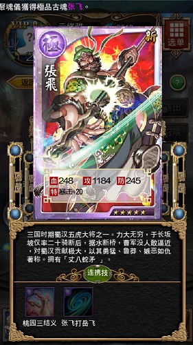 當(dāng)你解鎖更多功能之后,就可以通過不同的系統(tǒng)來提升人物的各種屬性,首先就是聚魂抽卡功能,這個玩法可以讓你通過消耗召喚石或精魂來獲得各種魂卡,玩家在獲得魂卡之后可以將魂卡裝備在陣容里的每一個角色身上,以提高角色的各項能力值。另外,特定的卡牌組合還可觸發(fā)連攜效果,例如“桃園三結(jié)義”效果就是由劉關(guān)張三位卡牌英雄共同觸發(fā),這些能力往往都非常強大,可以著重收集一下。