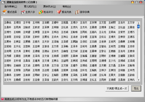 易象寶寶起名軟件是一款簡(jiǎn)單實(shí)用的免費(fèi)寶寶起名軟件,軟件基于姓名學(xué)原理,結(jié)合風(fēng)水五行等學(xué)說(shuō)自動(dòng)生成五千個(gè)寶寶名字,用戶(hù)可根據(jù)給出的名字中選擇你喜歡的即可,省去查詢(xún)字典的時(shí)間!