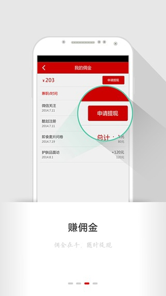 微兼職是手機賺錢的移動APP,是一款能通過手機賺錢的移動手機應用,通過智能手機,完成一些簡單的任務或兼職即可創(chuàng)造獲得收入,達到10元可以通過支付寶、財富通可以提現(xiàn)。微兼職希望打造中國最大的價值交易平臺,幫助每個人把時間、知識、技能、經(jīng)驗、思想進行交易來獲得更大的個人價值