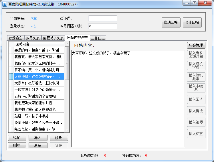 2、 具有高效的發(fā)貼功能,多線程技術(shù)、支持五個(gè)賬號(hào)同時(shí)回帖。