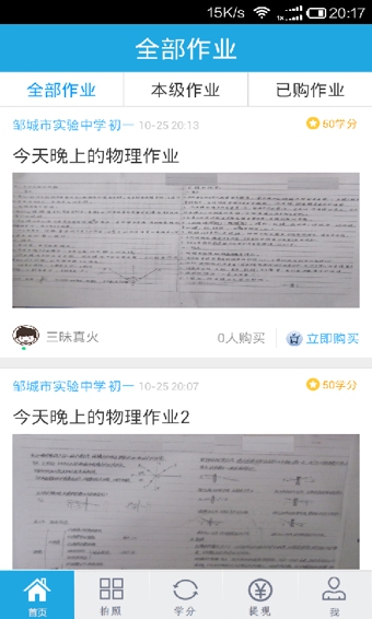 首款直面小學(xué)、初中、高中乃至大學(xué)的作業(yè)分享神器。學(xué)霸拍照上傳,第一時(shí)間獲得收益;學(xué)草免費(fèi)下載,瞬間秒殺作業(yè)。包含全國(guó)所有小學(xué)、初中、高中乃至大學(xué)的家庭作業(yè)以及教材題庫(kù),具體到單個(gè)的解題過(guò)程,最短時(shí)間內(nèi)幫您完成課余作業(yè)。