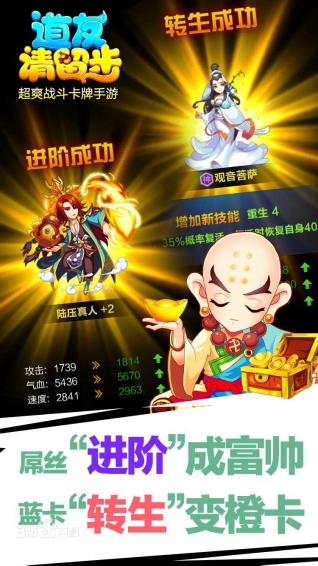 上手簡單玩法豐富,簡潔UI單手持玩,仙氣飄渺的神仙洞府,詼諧幽默的劇情故事,體驗超爽的戰(zhàn)斗節(jié)奏,數(shù)百張精美卡牌等你收集,升級進化應(yīng)有盡有,社交互動一個不少,好玩根本停不下來!
