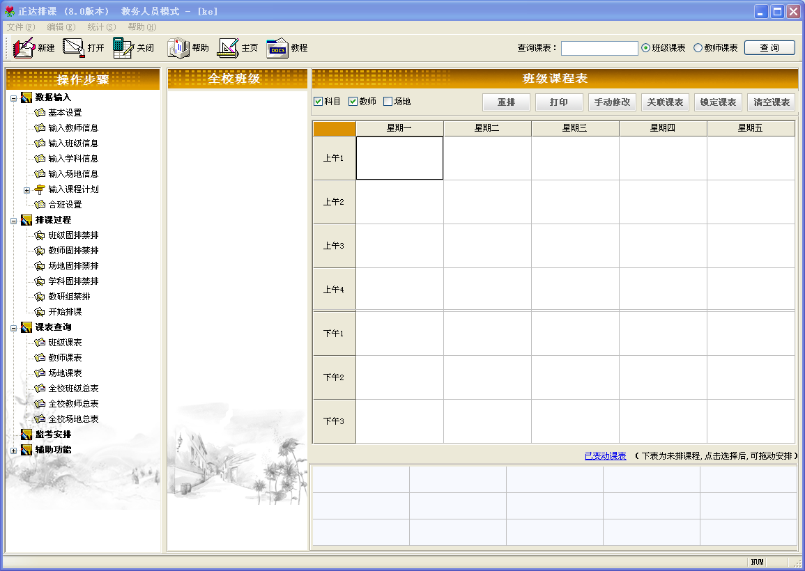 8、課程計(jì)劃提供了二種輸入方法:班級(jí)模式、教師模式。