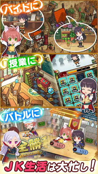《JK吸血鬼命運(yùn)的祭日(JKヴァンパイア~運(yùn)命のフェスタ~)》是一款模擬育成 SLG 手游,玩家使用拼圖的方式培育魔界女子高中生!在游戲中,玩家扮演剛到“圣阿卡迪亞學(xué)園”上任的教師,需要在20天的學(xué)期內(nèi)教育培養(yǎng)魔界的女子高中生。每天可以讓她們打工、上課,而上課的方式正是通過拼圖來進(jìn)行。拼圖過程中學(xué)生會(huì)向玩家提問需要向哪個(gè)方向?qū)W習(xí),最終會(huì)導(dǎo)致不同的能力值提升。另外課程達(dá)到指定分?jǐn)?shù)才能順利完成,否則會(huì)失敗。