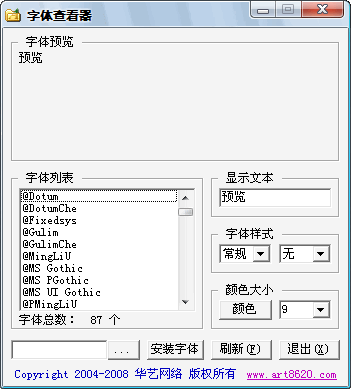 方便小巧的字體查看軟件,能快速顯示并預(yù)覽系統(tǒng)中所有已安裝的字體,并能自行更改顯示樣式、大小、顏色等……