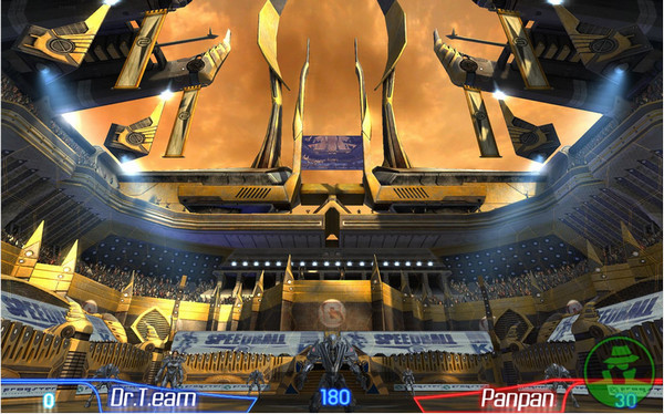 除了激烈的爭(zhēng)斗以外,球場(chǎng)上還設(shè)置了各種障礙,比如球場(chǎng)中間的圓環(huán),擊到后,球就會(huì)被反彈回去,當(dāng)然玩家也可以利用這些特殊的場(chǎng)地,來(lái)玩弄對(duì)手。