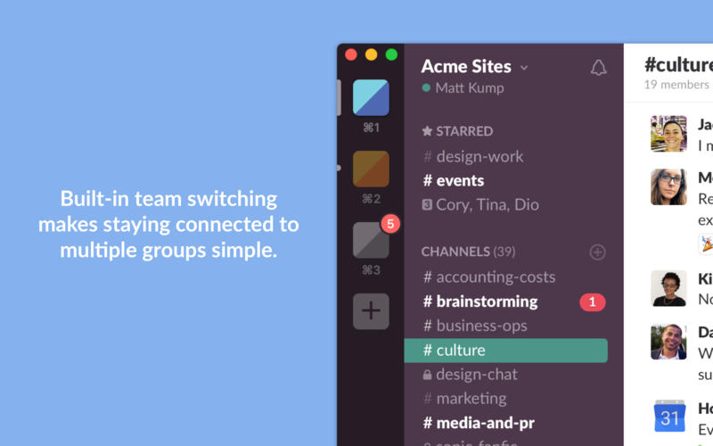 Slack for mac是Mac os平臺(tái)上的一款整合了聊天群組 + 大規(guī)模工具集成 + 文件整合 + 統(tǒng)一搜索的Mac社交通訊軟件,目前,Slack for mac已經(jīng)整合了電子郵件、短信、Google Drives、Twitter、Trello、Asana、GitHub 等 65 種工具和服務(wù)。