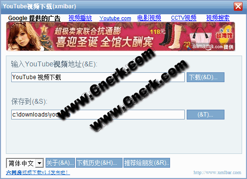 YouTube 視頻下載(xmlbar) V3.3 簡體中文綠色免費(fèi)版 YouTube視頻下載(xmlbar)是一個專門用于下載YouTube視頻到本機(jī)硬盤上的小軟件。它不但完全免費(fèi)而且干凈不含有任何插件,可以完全干凈卸載。用戶只需輸入需要下載的YouTube視頻的網(wǎng)絡(luò)地址并按下下載按鈕,它就會自動識別后進(jìn)行下載,下載的文件格式為flv。更好的是它還支持多個YouTube視頻文件同時下載,并能顯示出真實(shí)的YouTube視頻文件的下載地址,下載完后您還可以選擇馬上播放