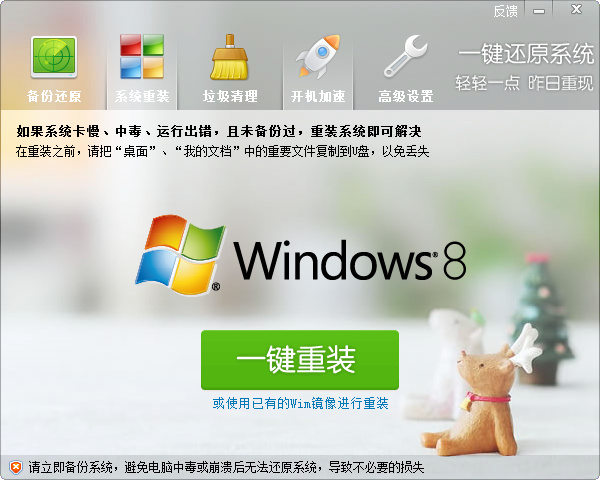 安裝完成后,您可以從桌面雙擊“一鍵還原系統(tǒng)”,然后您就看到了下圖所示的界面