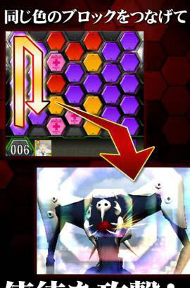 在新世紀福音戰(zhàn)士游戲戰(zhàn)斗中,玩家只需要在屏幕下方,把相同顏色的方塊用手指連在一起并消除,就能對敵人發(fā)動攻擊。消除的方塊是有屬性設(shè)定的,與消除的方塊相同屬性的角色才會發(fā)動攻擊。當(dāng)然,消除的方塊越多,攻擊力越厲害,而除了攻擊之外,消除粉紅色方塊就能回血。此外,只要滿足特定條件,就能發(fā)動“技能”,而角色發(fā)動時,還會有專有動畫哦!