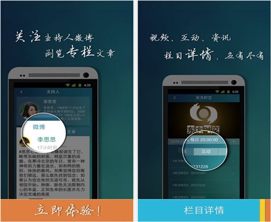 4、主持人:24小時(shí)不間斷更新央視著名主持人的專(zhuān)欄和微博,使觀(guān)眾不僅了解到真實(shí)的主持人工作、生活狀態(tài),還可以與主持人在線(xiàn)交流。