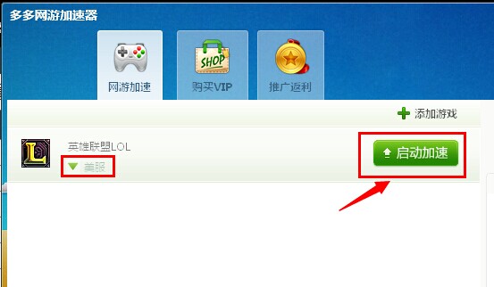 1.打開多多網(wǎng)游加速器客戶端,登錄你的賬號之后,點“添加游戲”如下圖