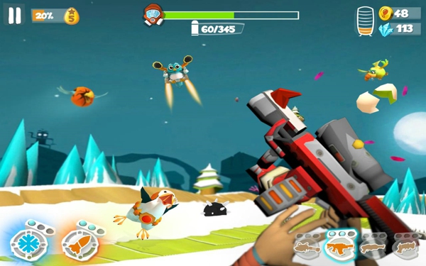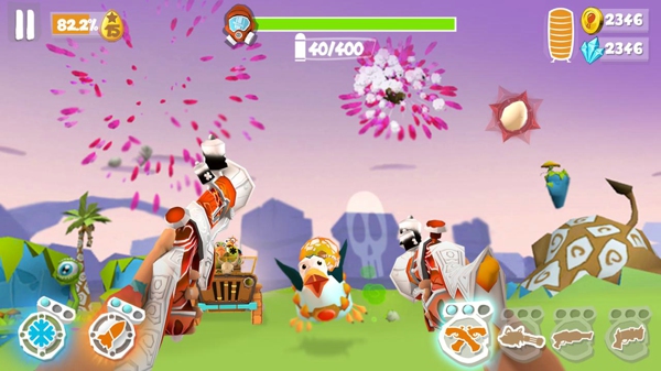 除了武器之外,您還可以使用可升級(jí)的道具,比如自動(dòng)尋的導(dǎo)彈或雷暴,這只是其中幾種。有計(jì)劃地使用這些道具,完成更艱難的關(guān)卡并盡可能殺傷惡鳥!