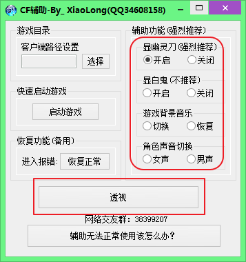 小龍CF最新輔助是一款綠色免費(fèi)的由小龍軟件下載官網(wǎng)制作的CF穿越火線游戲的輔助修改工具。軟件功能強(qiáng)大,為玩家提供了顯示幽靈刀,透視功能切換聲音等等功能。