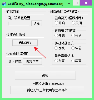 1、打開(kāi)應(yīng)用程序,點(diǎn)擊【啟動(dòng)游戲】(輔助會(huì)自行設(shè)別CF客戶端)