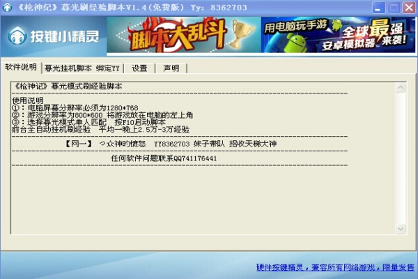 槍神紀(jì)暮光掛機腳本下載 v1.4 免費版 槍神紀(jì)暮光掛機腳本是一款《槍神紀(jì)》射擊游戲的輔助工具,它是該游戲的第一款免費不封號刷經(jīng)驗?zāi)_本,有了它,你就可以輕輕松松的升級領(lǐng)取獎勵了,有需要的趕快下載吧!