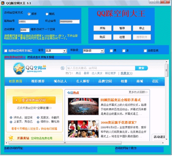 QQ踩空間大王 V3.1 簡(jiǎn)體中文綠色特別版 通過高速自動(dòng)訪問億萬QQ用戶空間,達(dá)到回返自己空間效果