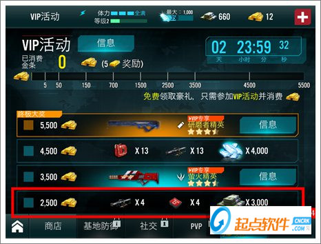 玩家只要累計(jì)消費(fèi)2500金條,vip活動(dòng)就送包括3000元金錢(qián)的大禮包。