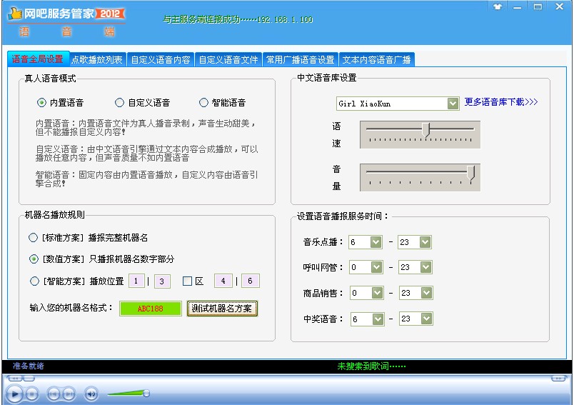 注意:運(yùn)行語(yǔ)音端的機(jī)器需聲卡正常,以及安裝有Windows Media Player10或以上版本!