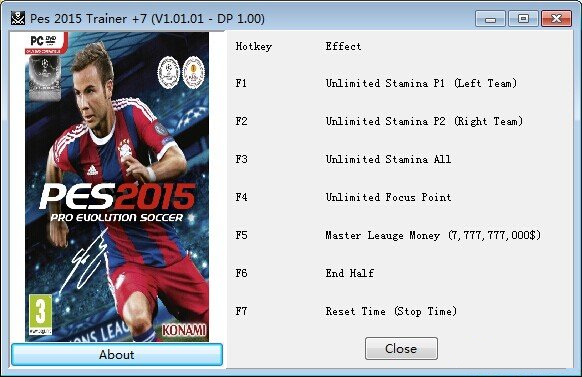 實(shí)況足球2015七項(xiàng)修改器 v1.0101 免費(fèi)版 軟件大?。?/span>4.0MB