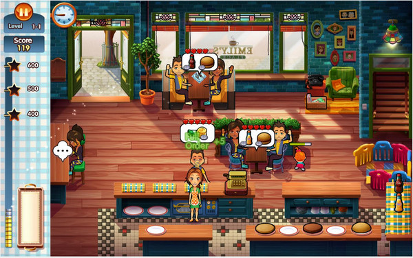 17個(gè)緊張的關(guān)卡,和前作一樣,不同需求的客人讓你應(yīng)接不暇。艾米麗的孩子會(huì)時(shí)不時(shí)的四處爬動(dòng),工作中也要抽出時(shí)間照顧小孩。