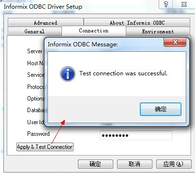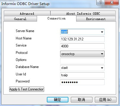 Server Name 是剛才在Setnet32中配置的Informix Server;Service是端口號;