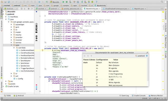 此外,該IDE采用了一種基于自動化構建工具Gradle的系統,據稱可以提供很好的靈活性與擴展性,并支持在IDE之內或之外進行開發(fā)編譯。其關鍵特性包括多版本(如調試版、發(fā)布版,付費版、免費版)支持,多APK支持、多dex文件支持以及對第三方開發(fā)庫的依賴性管理等。同時,Google也發(fā)布了針對Gradle的插件。不過,雖然Android Studio支持Gradle自動化構建工具,但對于剛從Eclipse平臺轉移過來的開發(fā)者來說,還是需要時間去學習適應的。