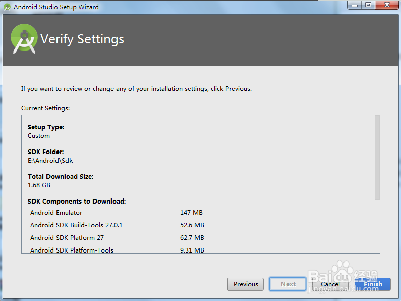 推薦提前安裝好SDK,是安卓開發(fā)環(huán)境,然后Android SDK Location就選擇自己安裝SDK的路徑即可。點擊下一步。