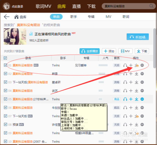 3、選擇自己想聽的歌曲版本點(diǎn)擊播放即可