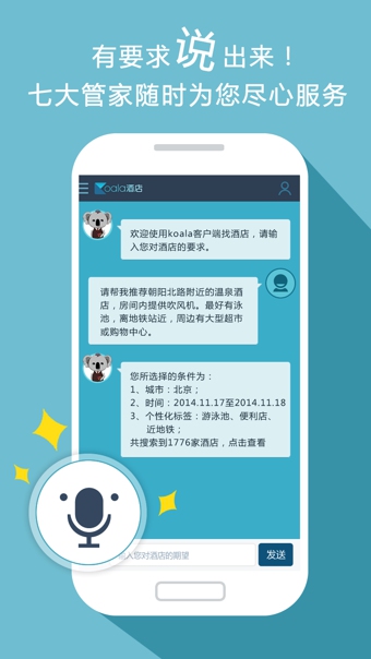 讓處女座也能找到滿意的酒店的挑房軟件真的來(lái)了!7只各具本領(lǐng)的呆萌考拉閱讀了所有酒店的點(diǎn)評(píng)數(shù)據(jù),并以此為依據(jù)幫您推薦您最想要的酒店!徹底告別選個(gè)城市選個(gè)星級(jí)找酒店的時(shí)代!隔音要好、要有干凈的游泳池、再來(lái)個(gè)早餐豐盛的……等等這些要求您盡管提,用考拉酒店找房就是這么任性!挑酒店用考拉,哪里都有你的家!
