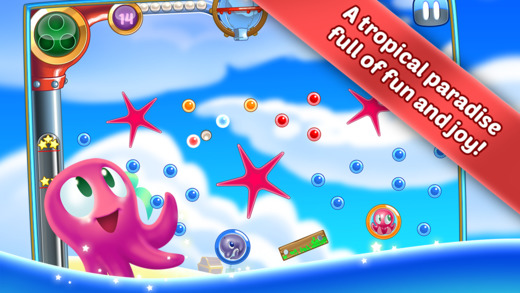 《海洋之星 Pearl Pop:Arcade Shooter》是一款休閑娛樂類的游戲,游戲玩法有點(diǎn)類似于打彈珠,只不過這次是由上往下發(fā)射的而且加入了重力系統(tǒng),點(diǎn)擊屏幕上的一個(gè)個(gè)氣泡,它就會(huì)自動(dòng)射擊打破這些氣泡,你的目的就是釋放出一只只被困住的海洋動(dòng)物。你的射擊次數(shù)越少,得分越高,評(píng)星就越高,然后就有可能觸發(fā)挑戰(zhàn)任務(wù)哦。是不是很有意思,喜歡的玩家可以下載體驗(yàn)哦。【游戲評(píng)測(cè)】