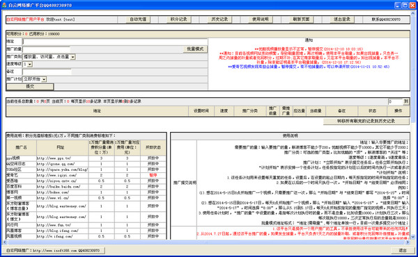 白云網(wǎng)絡(luò)推廣軟件是一款非常專業(yè)的刷點(diǎn)擊量軟件,可以幫助用戶輕松的提高土豆、酷6、樂視、優(yōu)酷等主流網(wǎng)站的點(diǎn)擊量,從而提高視頻的排名,以此來吸引更多的網(wǎng)民觀看視頻,達(dá)到視頻推廣的作用。